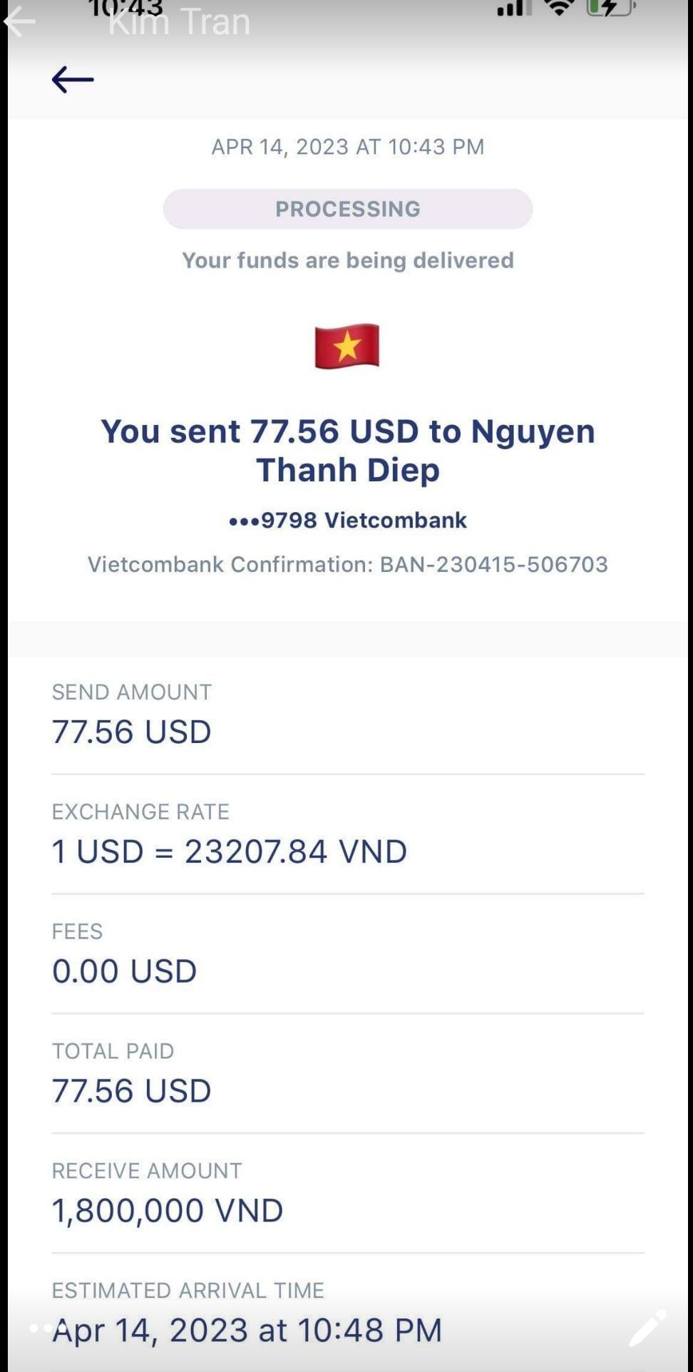 Lathuvang đã trung chuyển tk Tieuhuongduong 1,800,000đ CMTX T10/22 đến T3/23 em Mã Kim Hiếu của chị Whoadung.