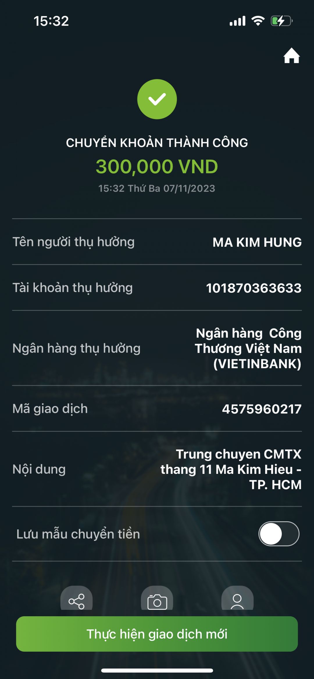 THD gởi hình ảnh chuyển khoản CMTX 300,000đ tháng 2.2024.
