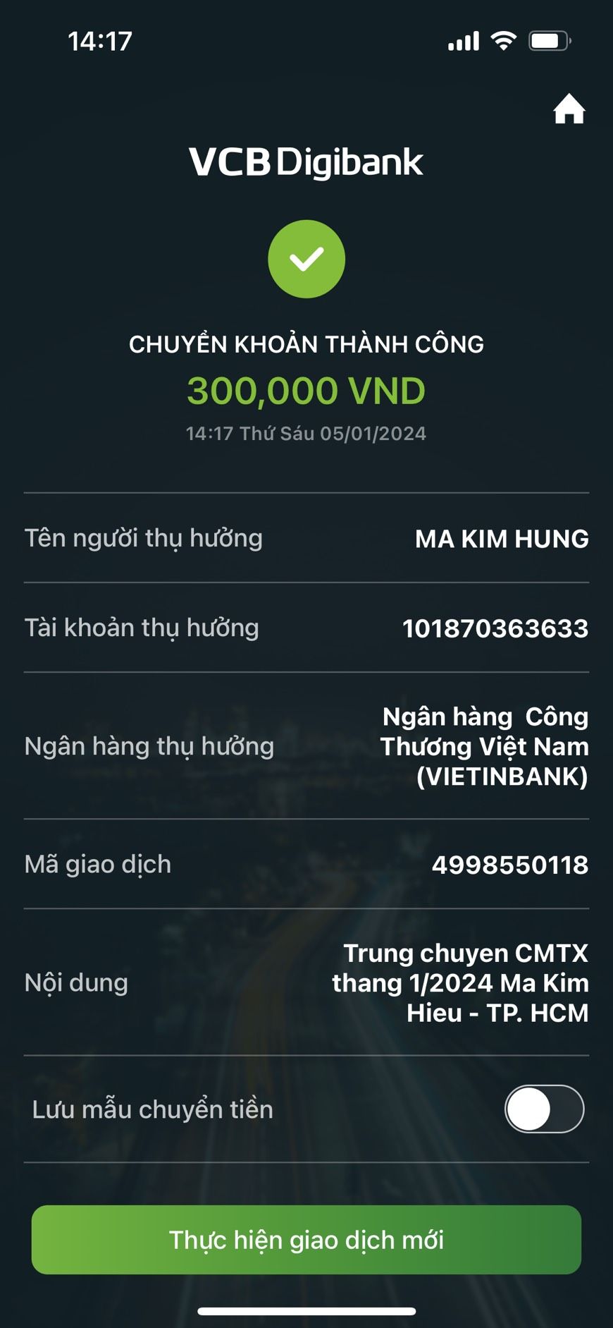 THD gởi hình ảnh chuyển khoản CMTX 300,000đ tháng 2.2024.