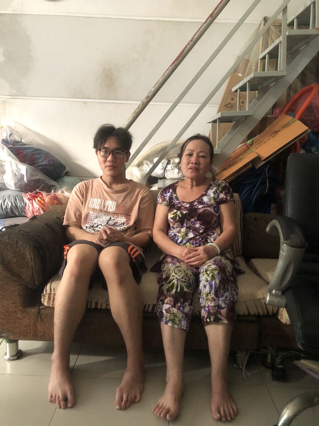 - Khi ba Phong còn sống, anh là người chăm lo mọi thứ và lo kinh tế gia đình bằng công việc đi thông dịch tự do cho người đi khám bệnh (anh và chị đều người gốc Hoa). Chị ở nhà nội trợ, không đi đâu nên đường sá trên Saigon chị cũng không rành. Việc đưa đón Phong đi học cũng là anh đưa đi đón về. Anh mắc covid và mất ngày 15/8 khi Saigon bước vào đỉnh dịch. Tro cốt của anh được gởi về Bình Dương, vì đây nhà trọ nên không được để, thêm nữa anh chị bên đạo nên cũng không thờ cúng, chỉ treo tấm ảnh anh trong nhà.