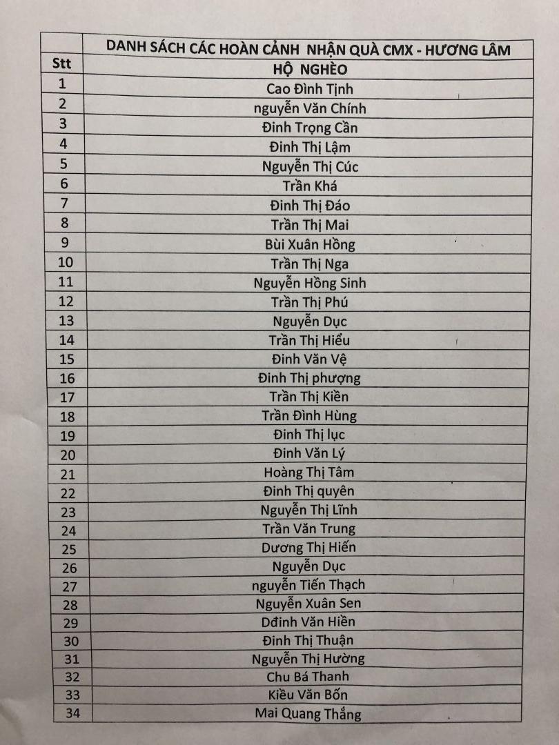 VKS xin cập nhật danh sách các hộ gia đình thuộc hộ nghèo, cận nghèo và người già neo đơn, người tàn tật xóm 6 xà hương lâm