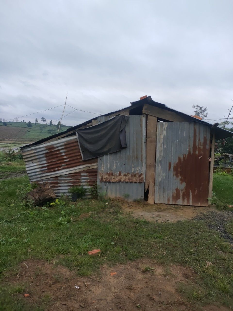 Hiện tại gia đình em có 4 người sống trong căn chòi tạm bợ, dột nát...