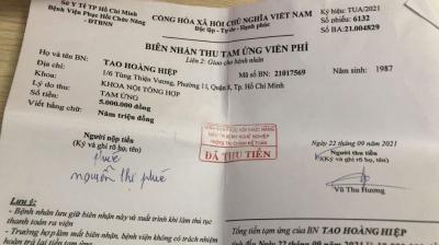 Anh Tào Hoàng Hiệp bị covid nằm điều trị tại bệnh viện chợ rẫy thở ecmo. Sau khi điều trị bênh covid thì bất tỉnh, hôn mê. Sau đó điều trị phục hồi chức năng tại bệnh viện quận 8 hơn 100tr nhưng không tiến triển, vẫn còn hôn mê, sống như người thực vật. Hiện tại gia đình không đủ điều kiện nên đã đem về nhà tại địa chỉ 30 Tùng Thiện Vương. P11. Quận 8.