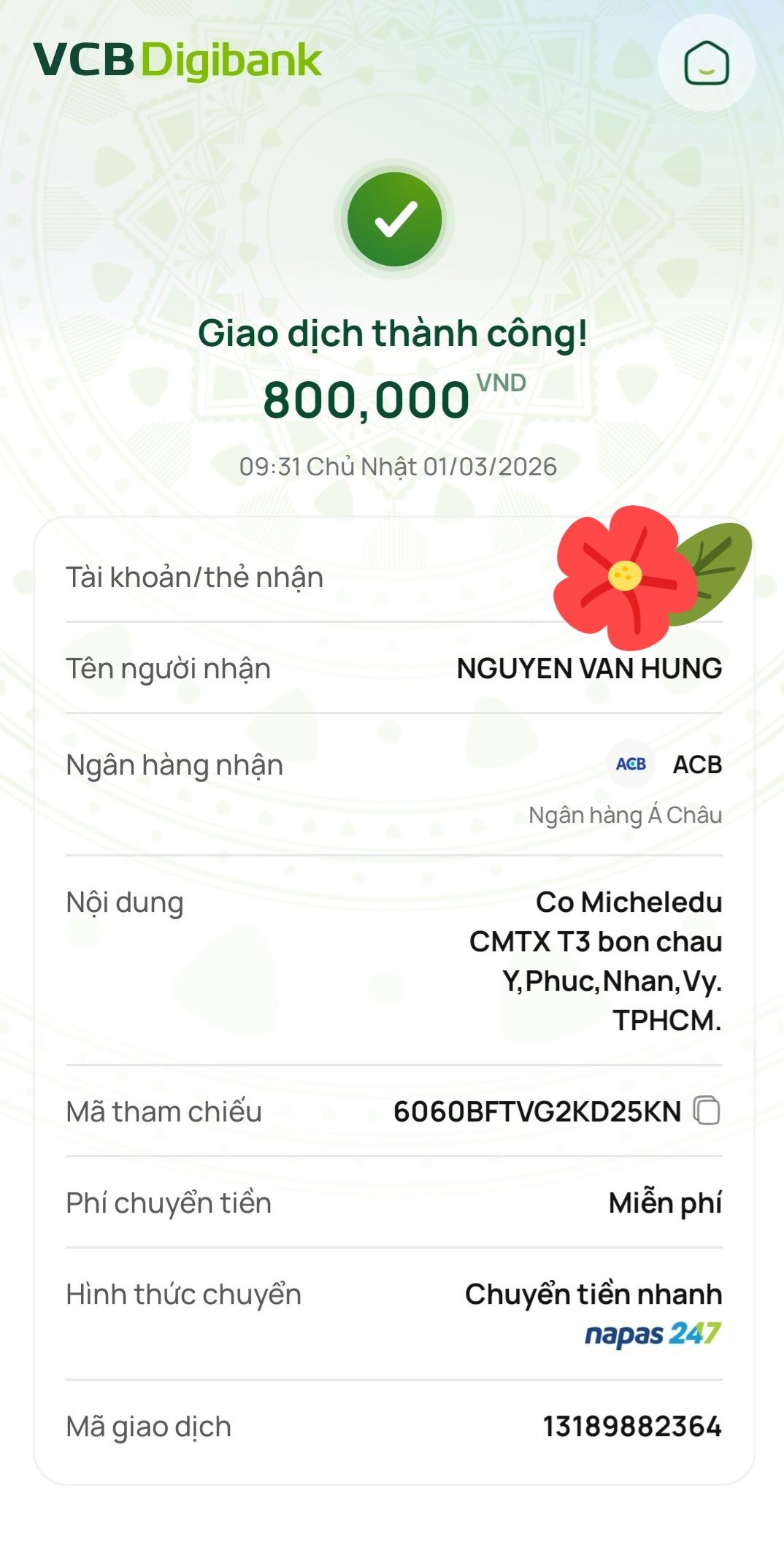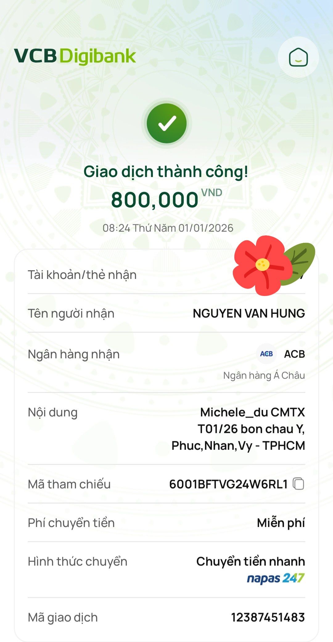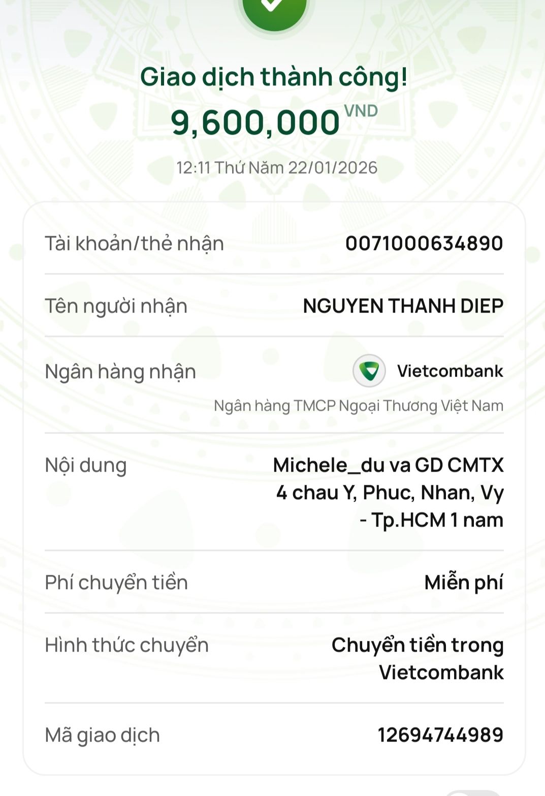 Lathuvang đã trung chuyển CMTX T01/2026 đến bốn cháu Ý,Phúc,Nhân,Vy của cô Michele_du và GĐ.
