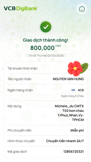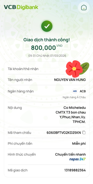 Michele_du và Gia đình vẫn tiếp tục CMTX các cháu với mức 800,000₫ từ tháng 2/2025 trong 1 năm các bạn nhé….