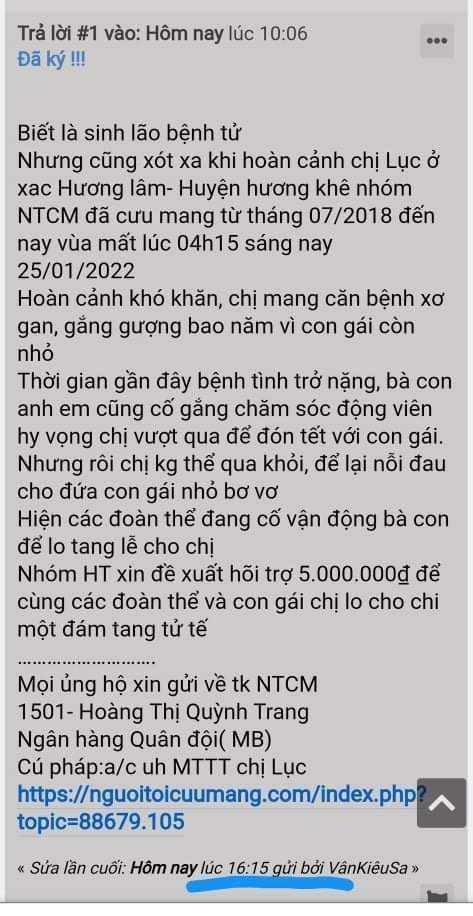 Nhưng cũng xót xa khi hoàn cảnh chị Lục ở xac Hương lâm- Huyện hương khê nhóm NTCM đã cưu mang từ tháng 07/2018 đến nay vùa mất lúc 04h15 sáng nay 25/01/2022