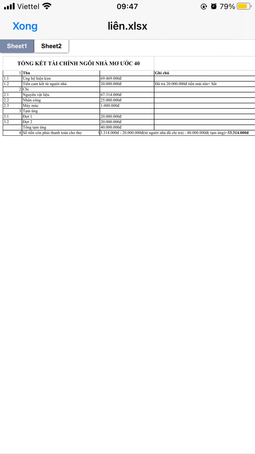 Nhóm xin ứng thêm số 20 triệu đồng để đưa tiền vật liệu cho nhà CC ạ.