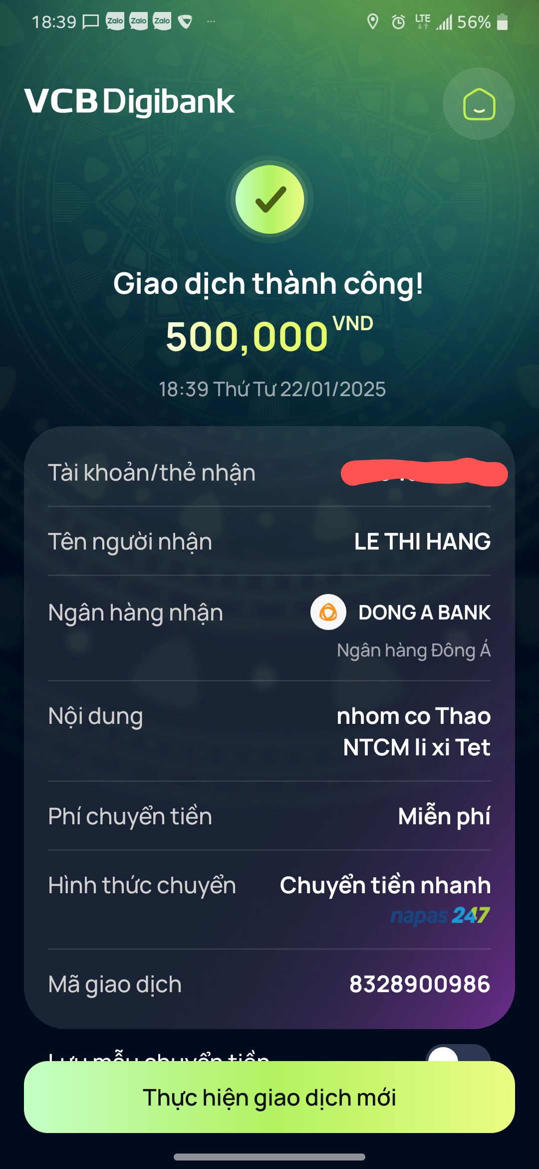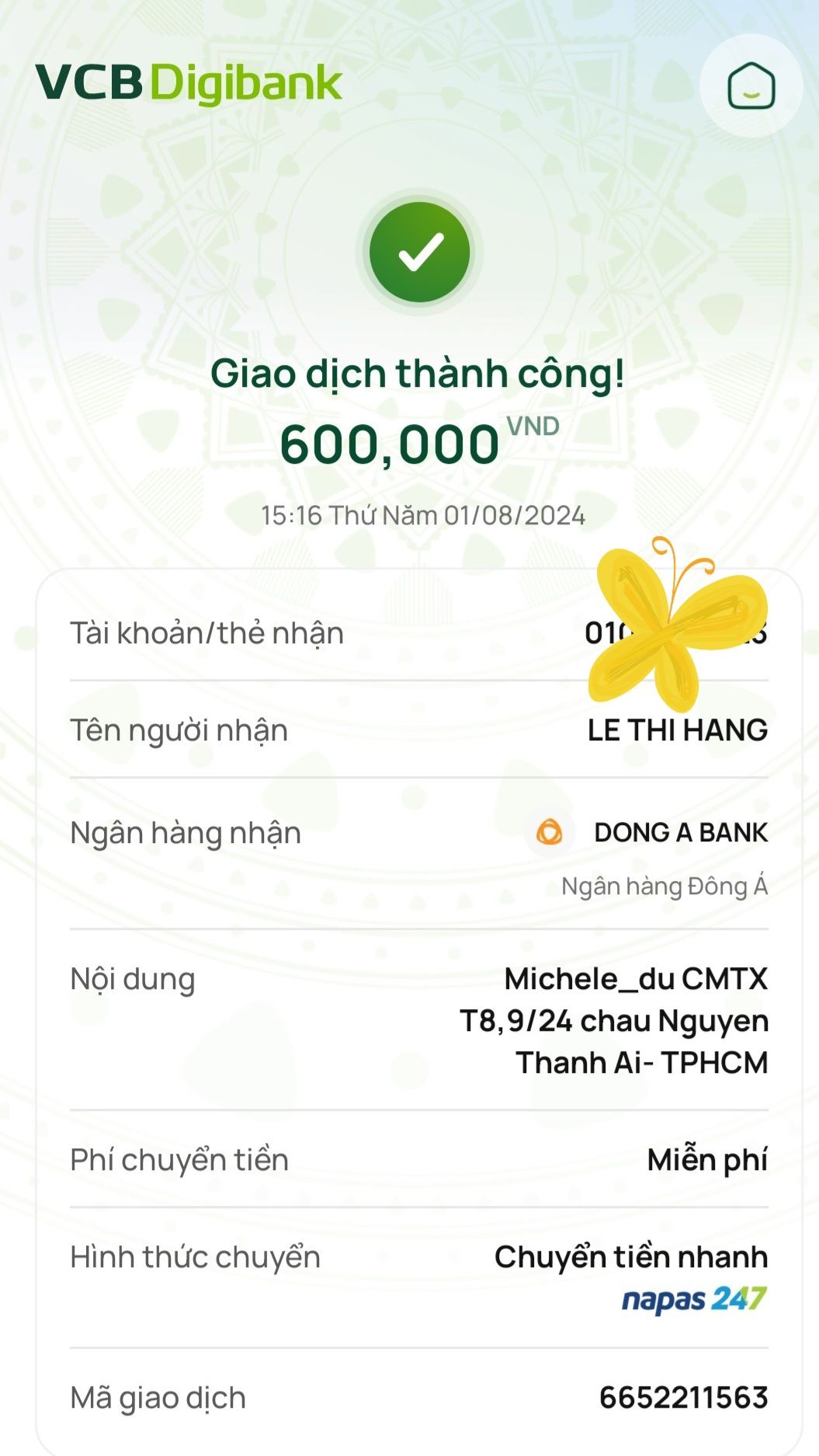 Lathuvang đã trung chuyển CMTX T12/24 và T01/25 đến cháu Ái của chị Michele_du và GĐ.