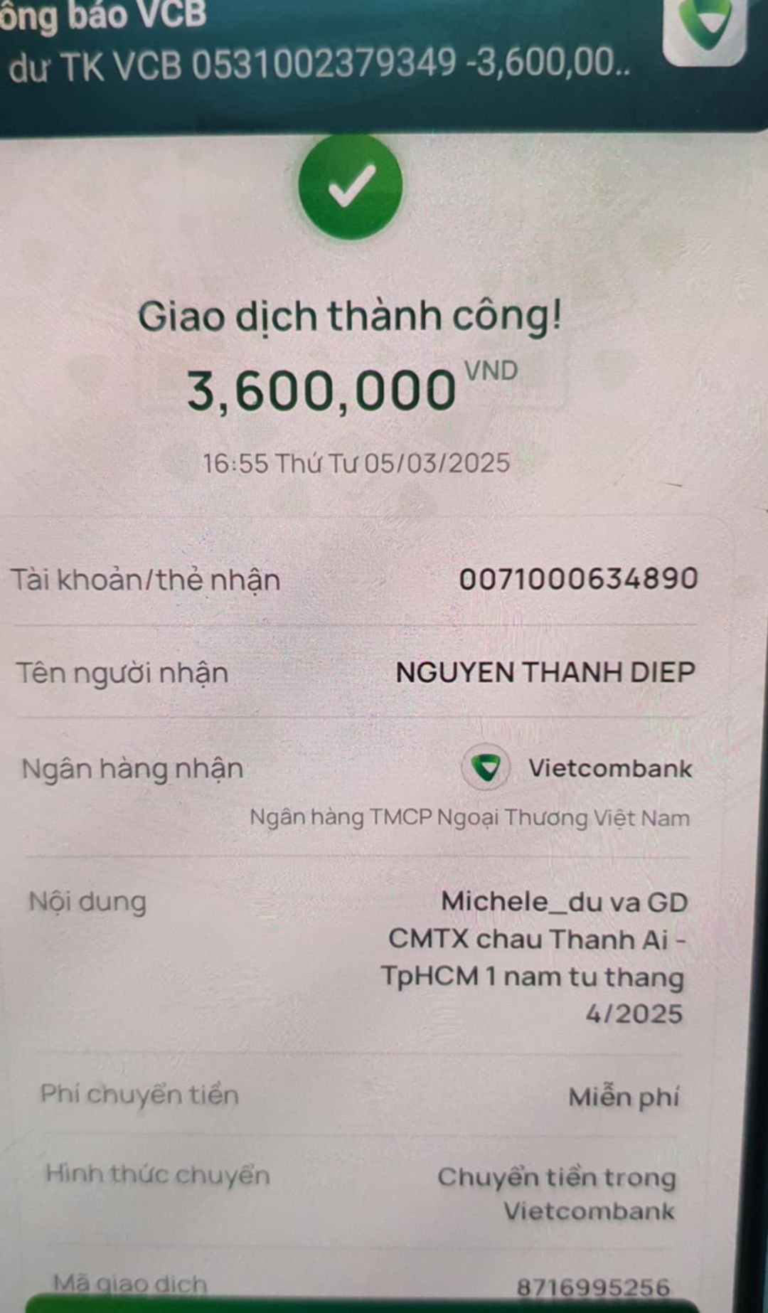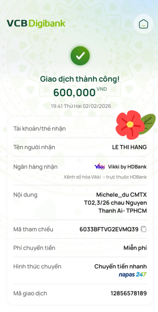 Lathuvang đã chuyển CMTX tháng 4,5/25 đến cháu Ái của cô Michele_du và GĐ.