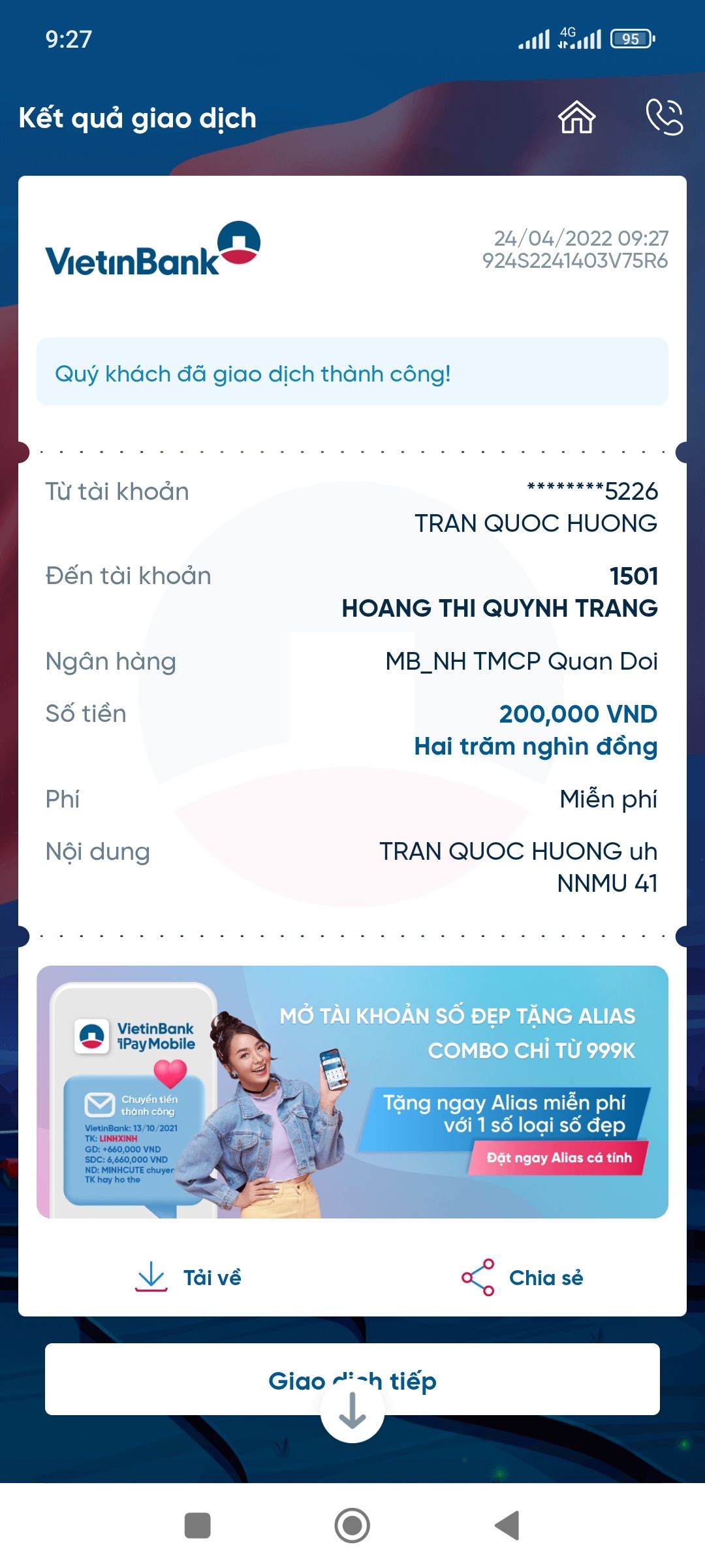 Mình xin góp 1.000.000đ, đã chuyển vào quỹ.