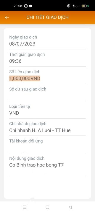 Cháu đã nhận được học bổng hỗ trợ của chú Ben được chú ThaiDzuy gửi.