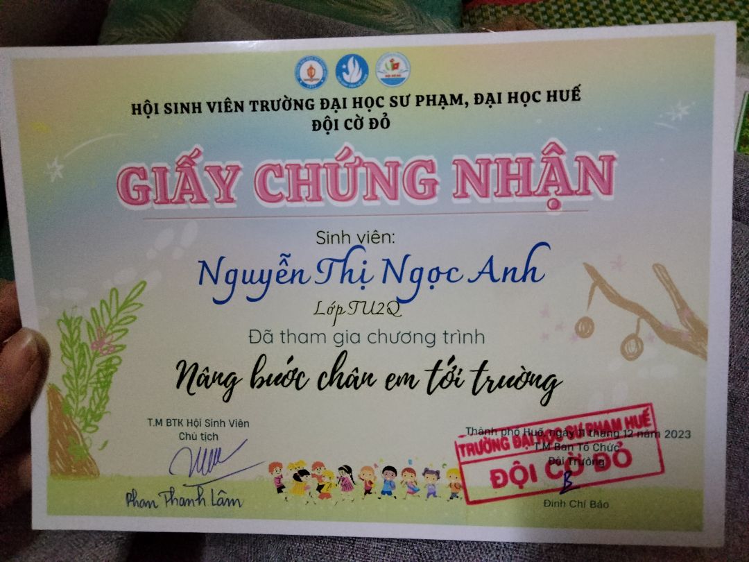 Con đã nhận được học bổng tháng 2 trị giá 500.000 đồng của chú Ben gửi rồi ạ!