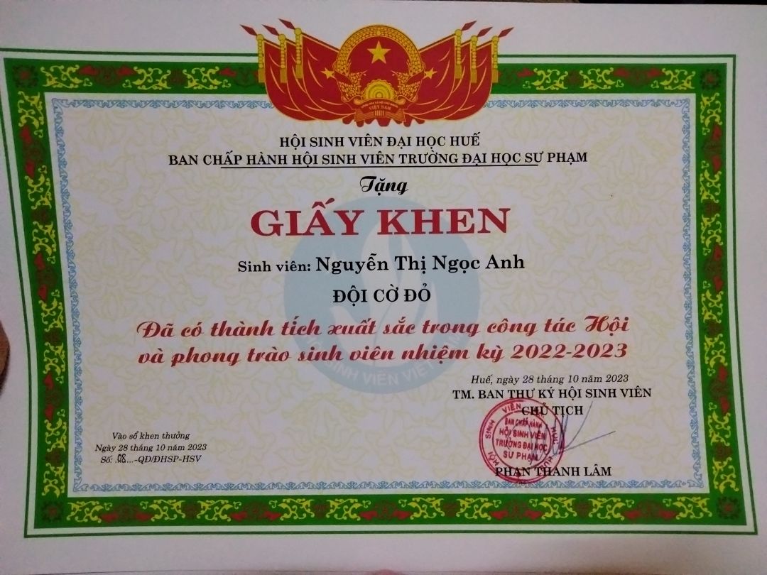 Nhân đây con xin phép được cập nhật một số thành tích mà con đã đạt được trong suốt thời gian vừa qua ạ! Sự cố gắng của con không chỉ ở lời nói mà con luôn hành động mỗi ngày để tốt hơn.