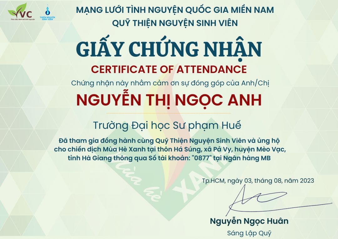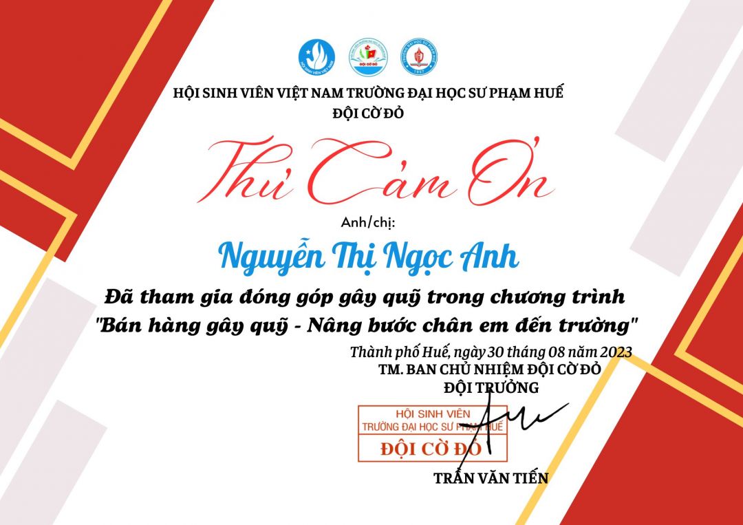 Hiện tại con đã nhận được phần quà trị giá 1 600 000 đồng của cô(chú) (TV giấu tên của NTCM) được cô lathuvang gửi đến con. Con xin cảm ơn cô(chú), cô lathuvang và quý MTQ mặc dù không phải lúc nào cũng nói ra nhưng các cô chú vẫn luôn theo dõi quá trình học tập của con. Món quà mà các cô chú gửi đến con không chỉ có giá trị vật chất mà còn là giá trị tinh thần, động lực để con cố gắng hơn mỗi ngày.