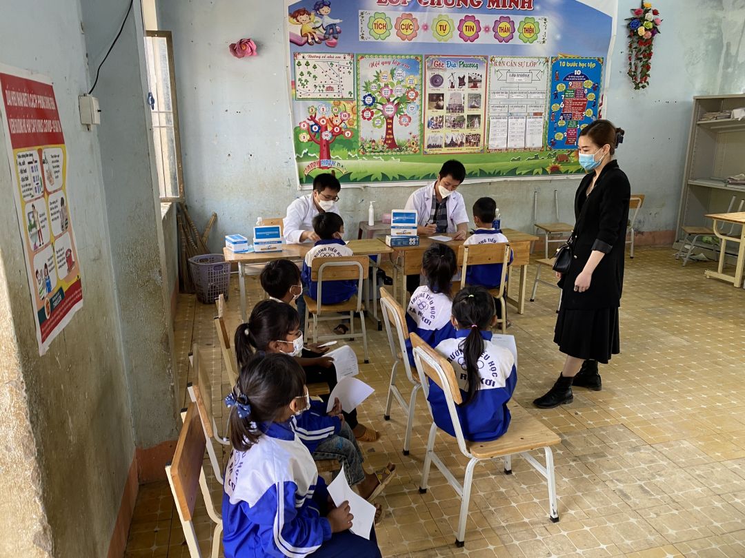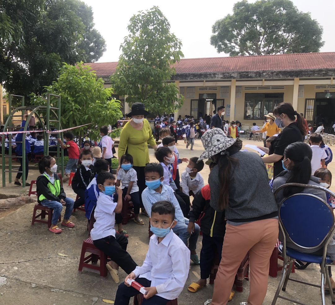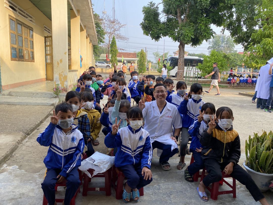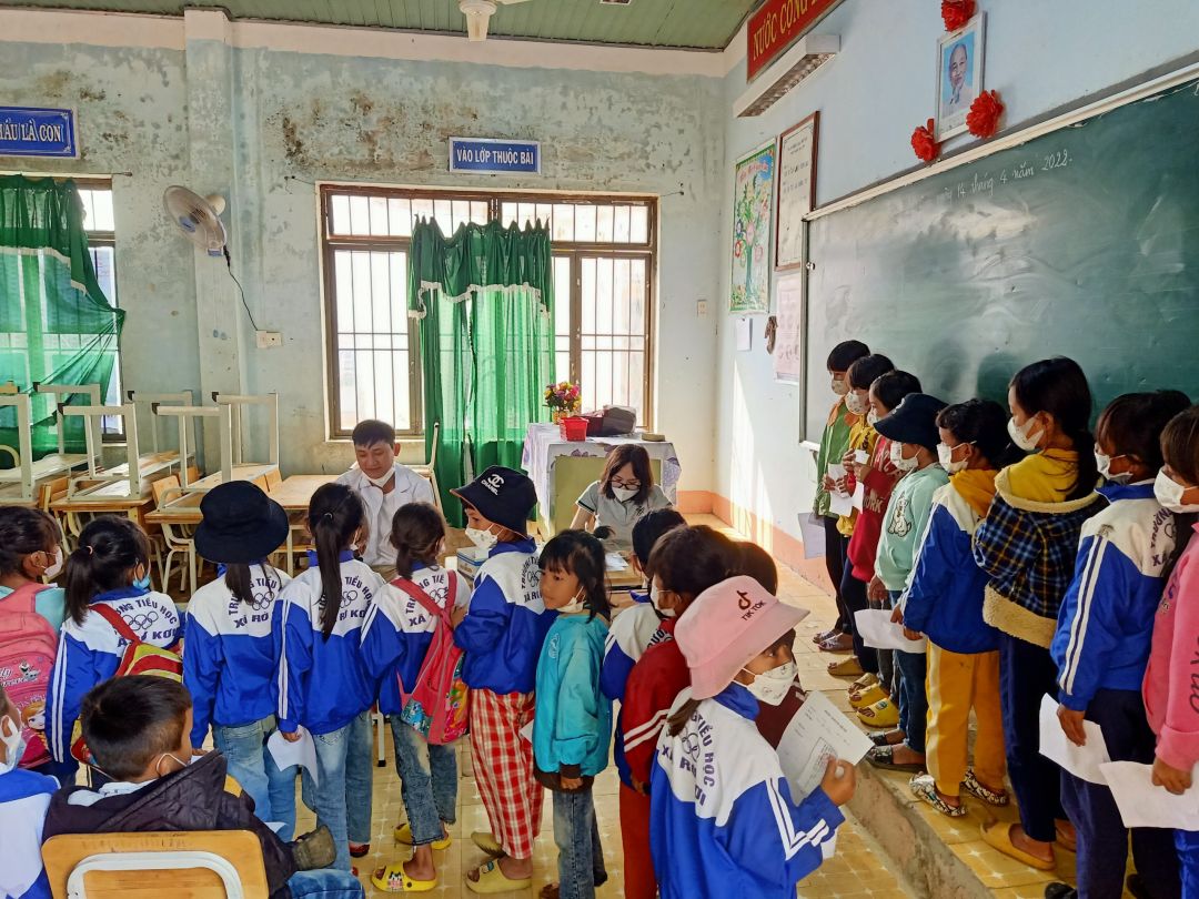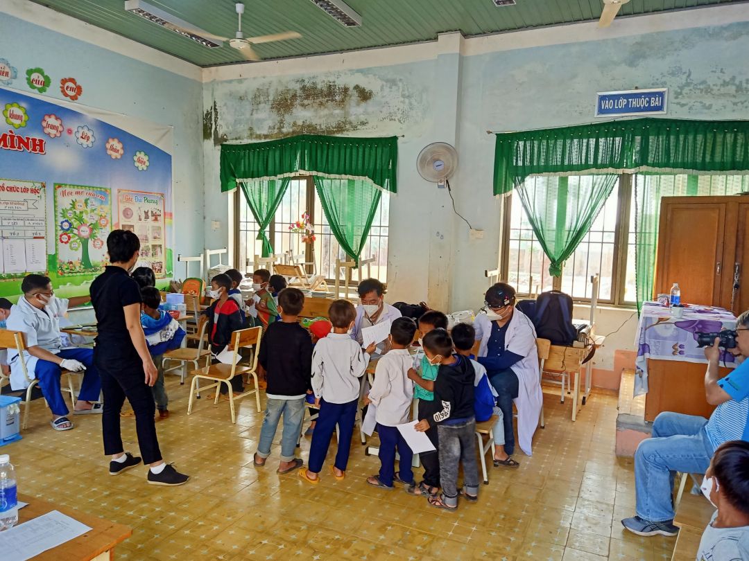 Sáng nay, đoàn bắt đầu khám bệnh và phát quà cho các cháu ạ. Em sẽ update thông tin liên tục