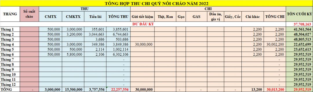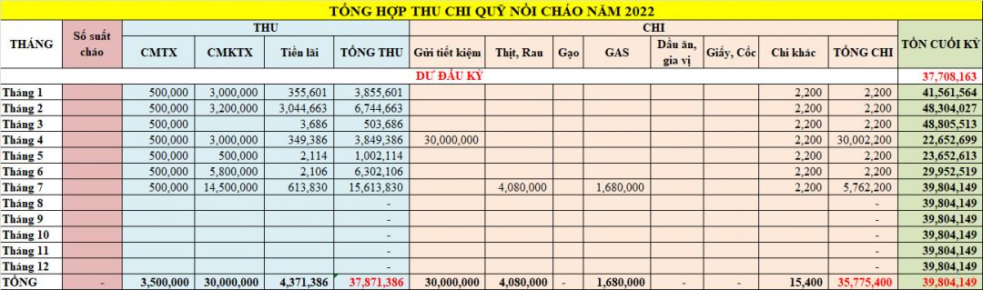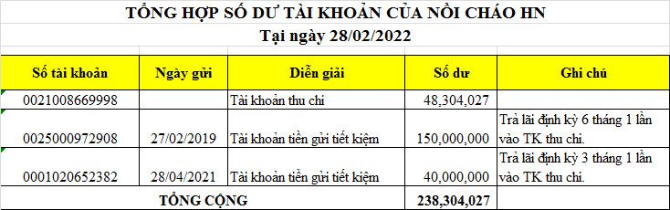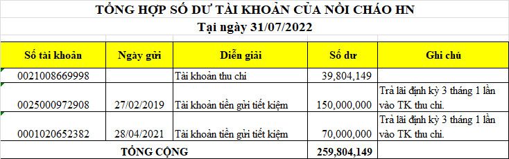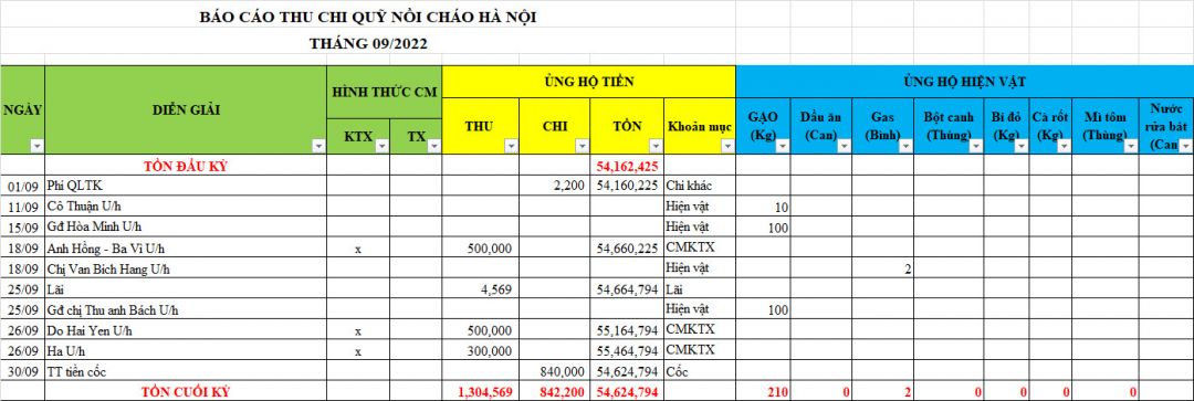 Quỹ NTCM chúng ta còn khoản tiền CMKTX Nồi cháo Hà Nội 4,000,000₫ (Theo số liệu tính tới tháng 9/2922)