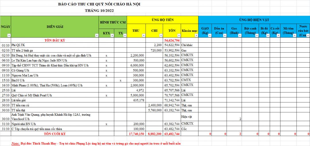Tác giả Chủ đề: Nồi cháo Hà Nội - Thống kê cưu mang, Báo cáo thu chi năm 2022  (Đã xem 2802 lần)