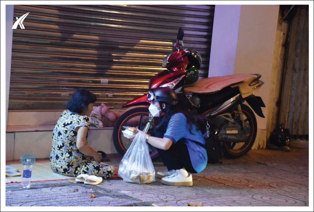 Nhớ hồi năm nhất mới vào Đội, mỗi lần Đội tổ chức hoạt động này thì mình luôn được nghe câu này từ các anh chị. Gì chứ anh chị nói vui thì chắc chắn vui rồi, đó không chỉ là cái vui đến từ những tiếng cười mà còn đến từ sự ấm áp len lỏi trong tim mỗi thành viên mỗi lần được tận tay đưa những phần xôi đến những cô chú vô gia cư và chứng kiến niềm hạnh phúc phảng phất trên gương mặt họ. Tự tay chuẩn bị từng phần xôi, tự tay đóng gói, vi vu trên khắp các con phố quận 10 để tìm kiếm những người cần nó, không gì ngăn được những chiếc áo Xung Kích phấp phới trong gió.