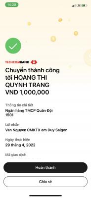 Lathuvang đã trung chuyển TK Quỹ NTCM 1,000,000đ giúp anh Trường Duy của Michele_du và GĐ .