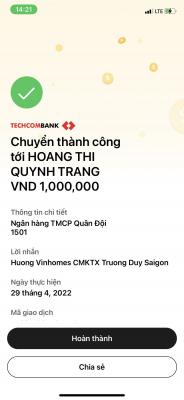 Lathuvang đã trung chuyển TK Quỹ NTCM 1,000,000đ giúp anh Trường Duy của Michele_du và GĐ .