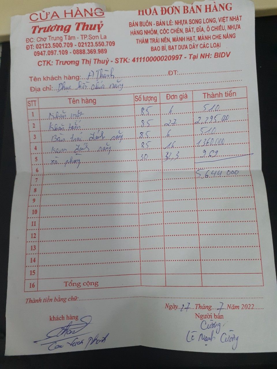 Tổng cộng: 5,644,000 VND.