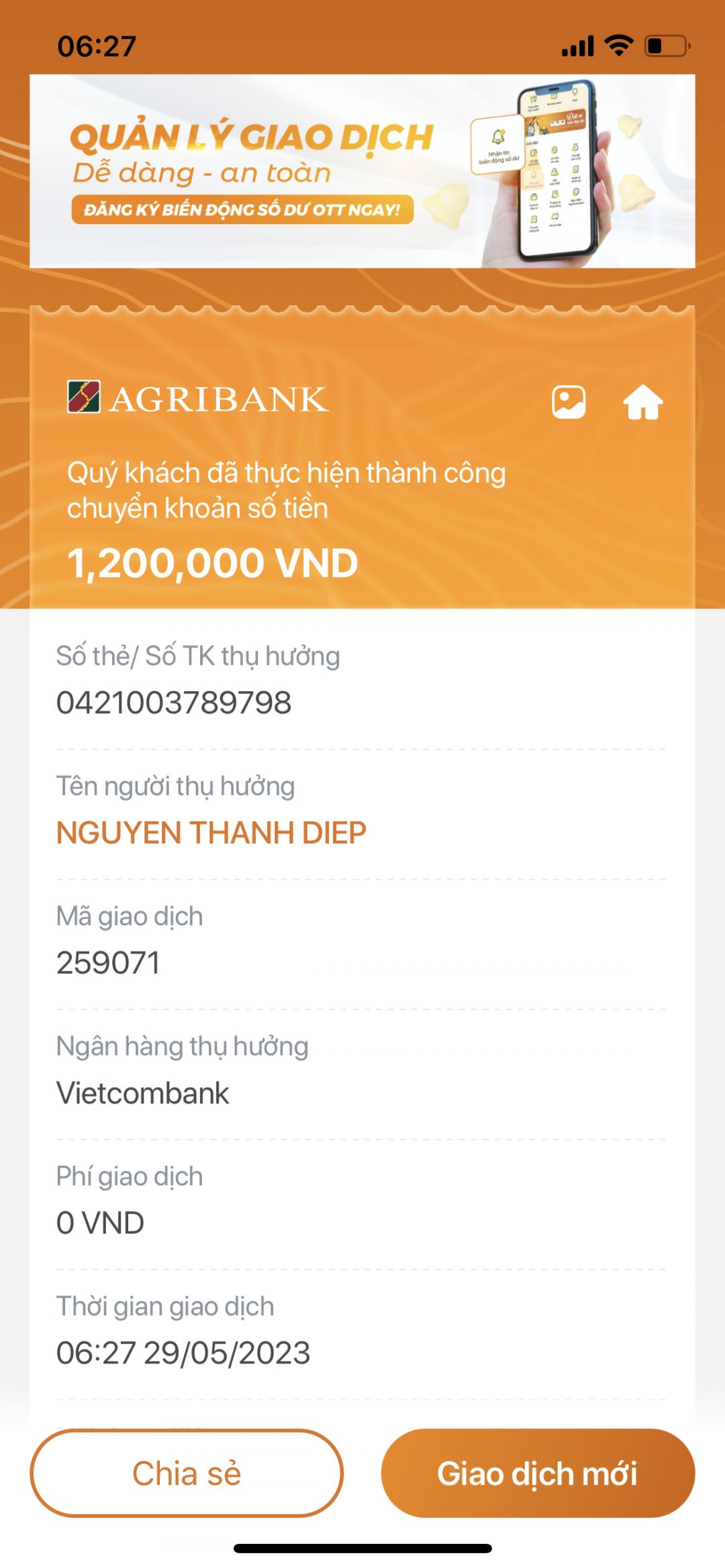Em vừa ck 200.000 đ ủng hộ nồi cháo A Lưới tháng 5 từ bạn Thu Nhi vào stk của chị Điệp ạ!