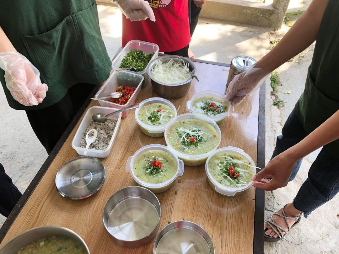 Nồi cháo từ thiện " Người tôi cưu mang" đem những phần cháo dinh dưỡng tới bà con bệnh nhân tại trung tâm y tế huyện A Lưới,