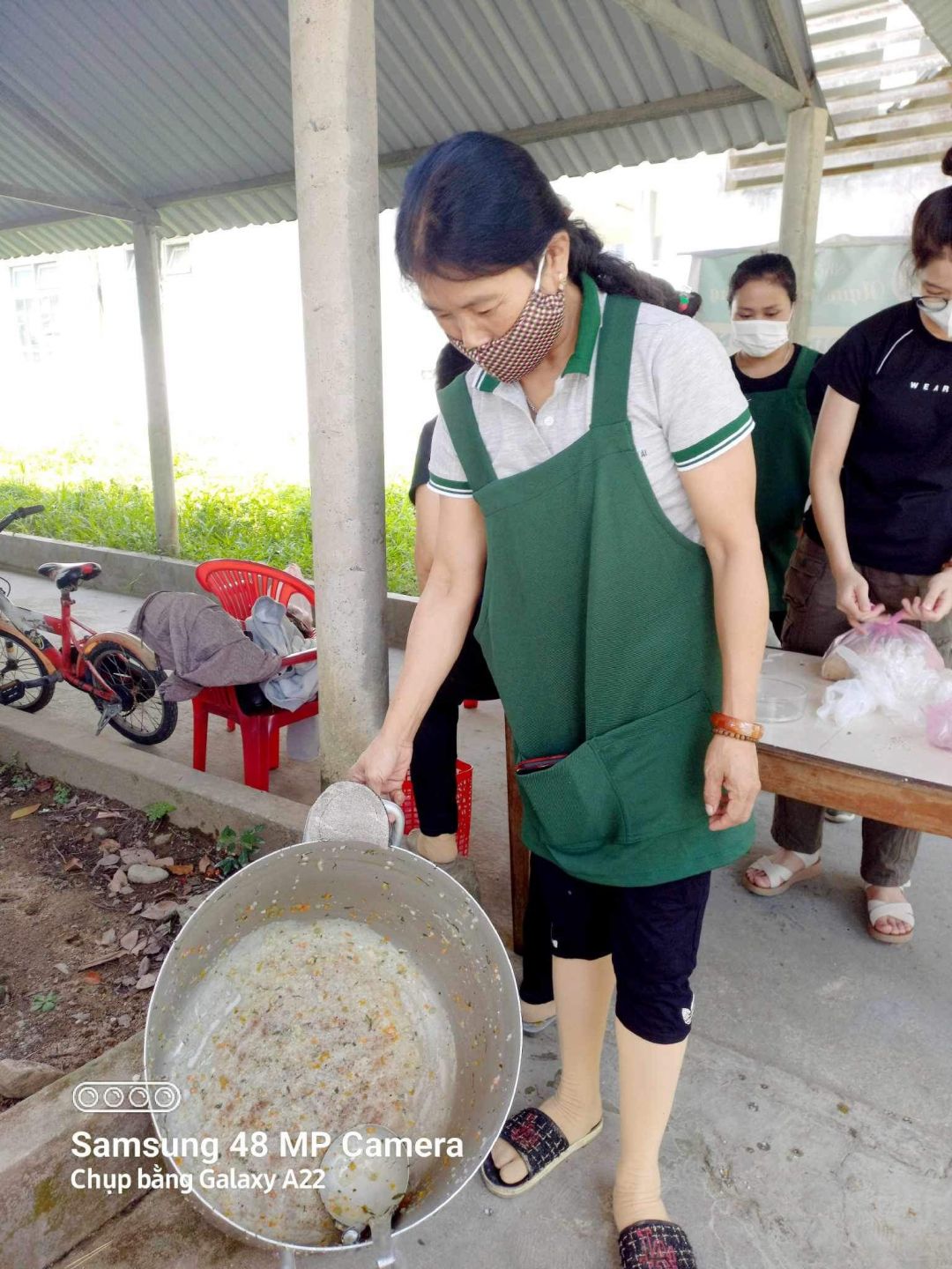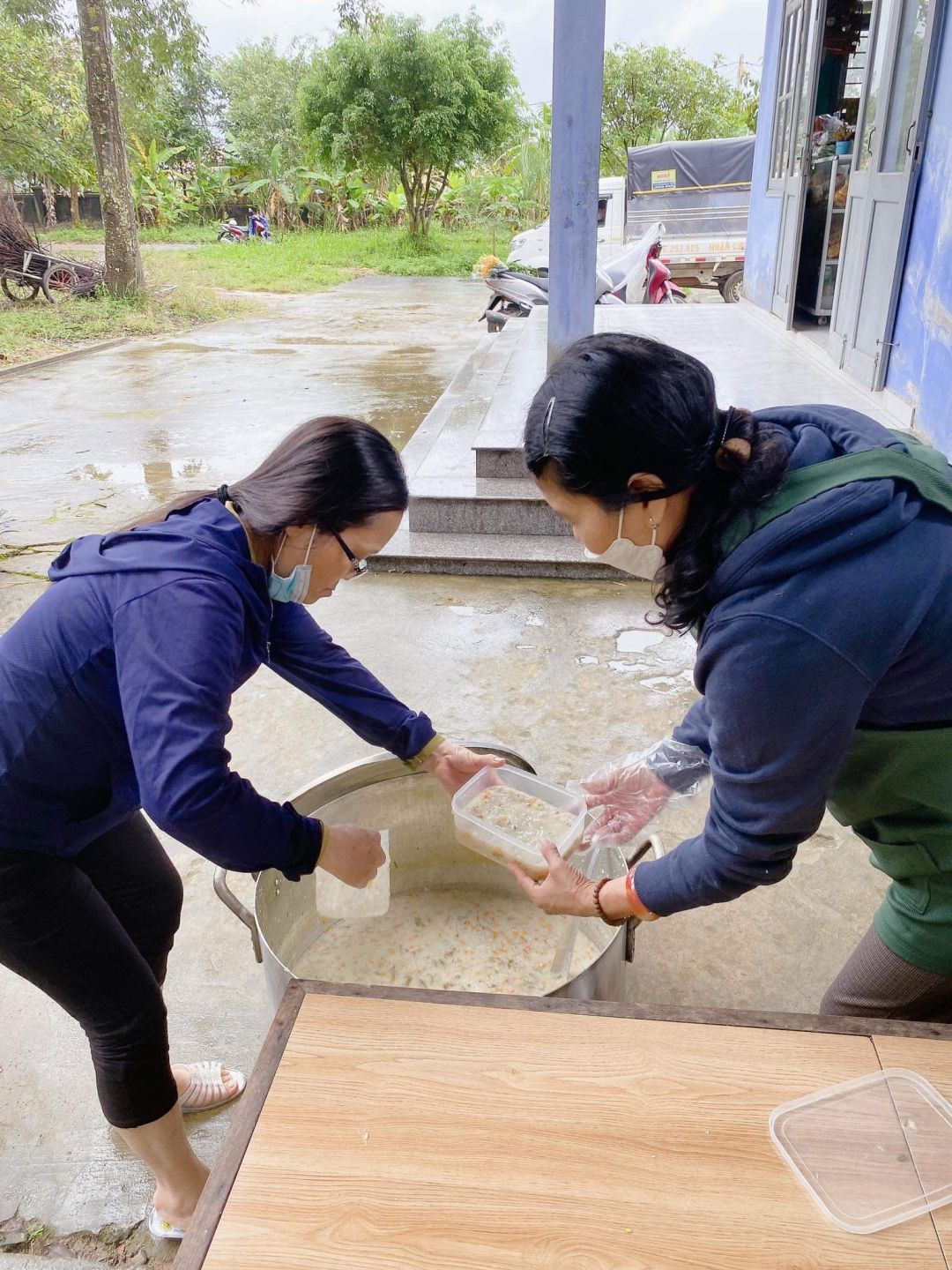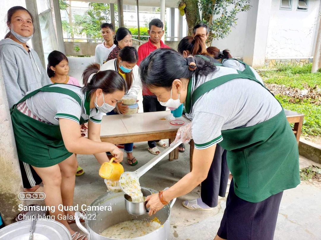 Cảm ơn quý chị em và các em học sinh dù dịp lễ vẫn thu xếp nấu cháo cho bà con!