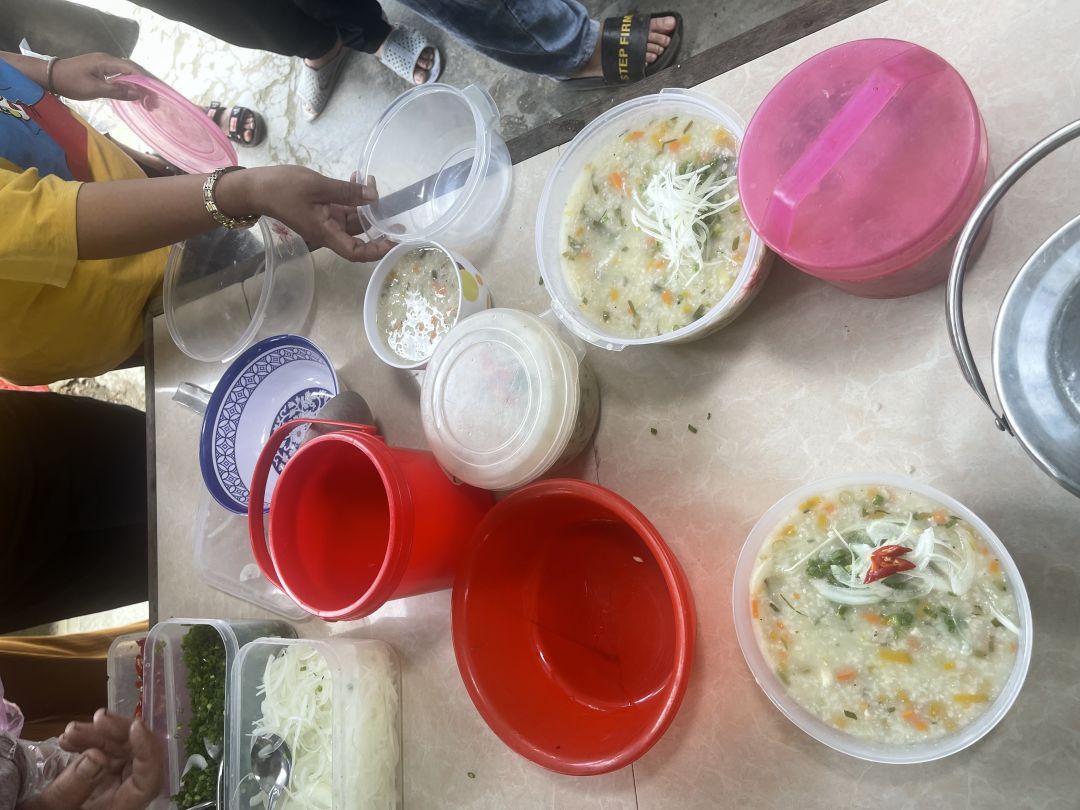 Cảm ơn quý chị em và các em học sinh dù dịp lễ vẫn thu xếp nấu cháo cho bà con!