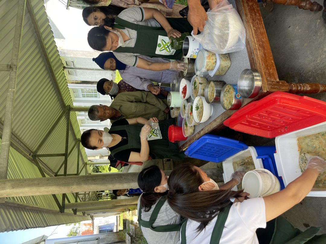 Đợt này  có các em học sinh tham gia phát cháo . Cảm ơn các em rất nhiều