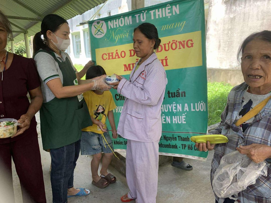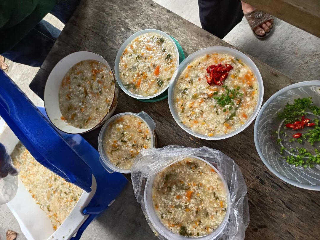 Cháo thơm ngon và được nhận rất nhanh tại trung tâm y tế huyện A Lưới, Huế.