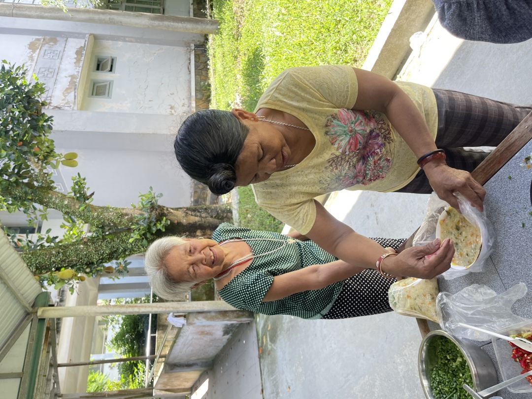 Bà con vui mừng khi nhận được cháo thiện nguyện Người tôi cưu mang