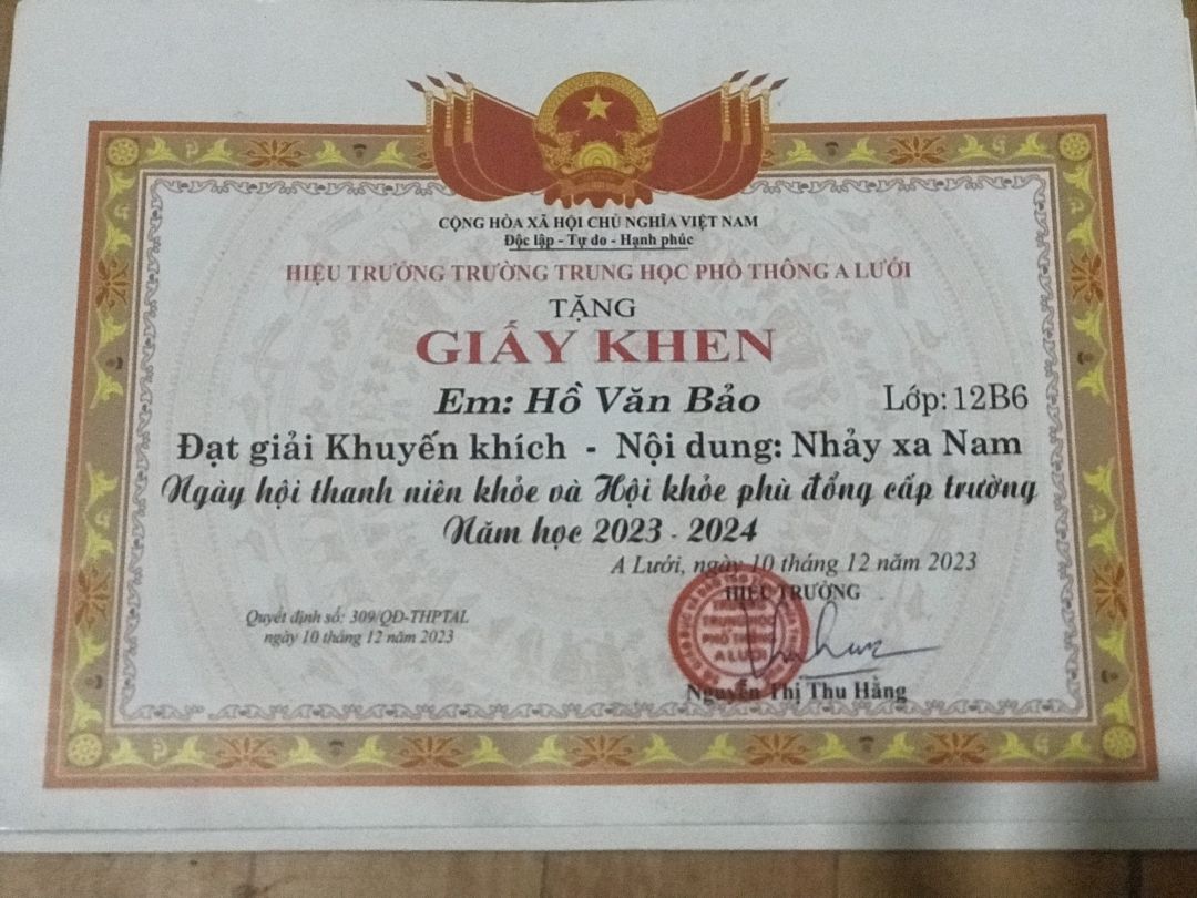Thành tích trong thể thao của cháu ạ.