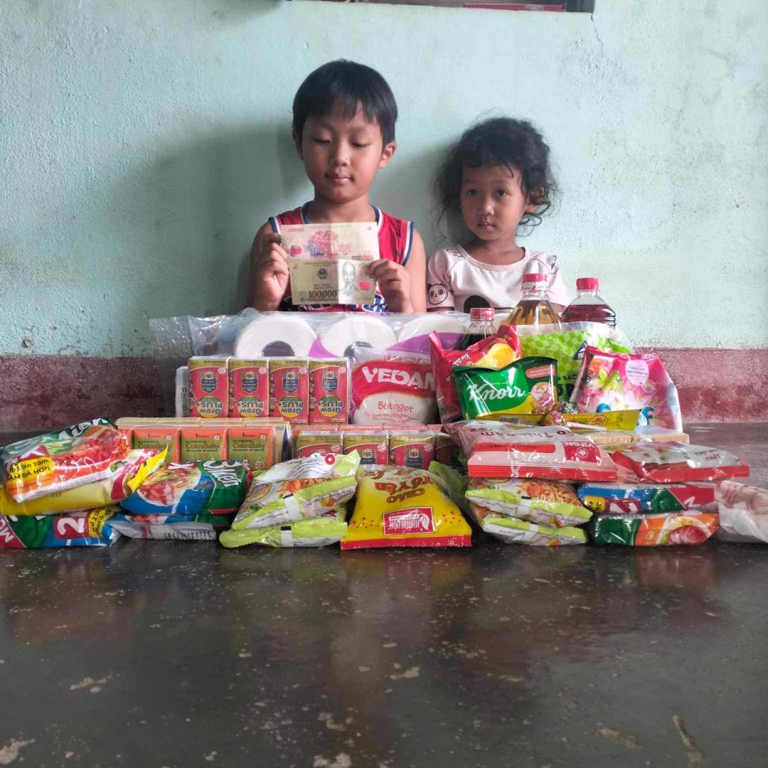 Em đã nhận được ck 2 triệu đồng và đã trao cho cháu Tuấn CMTX t6,7/ 2023. 600.000 đ tiền sữa. 800. 000đ nhu yếu phẩm và 600.000đ tiền mặt