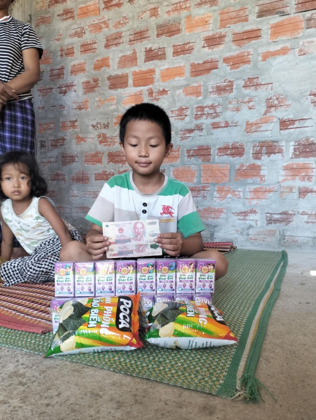 Em đã trao CMTX T1 gồm sữa 200.000đ và 300. 000 tiền mặt.
