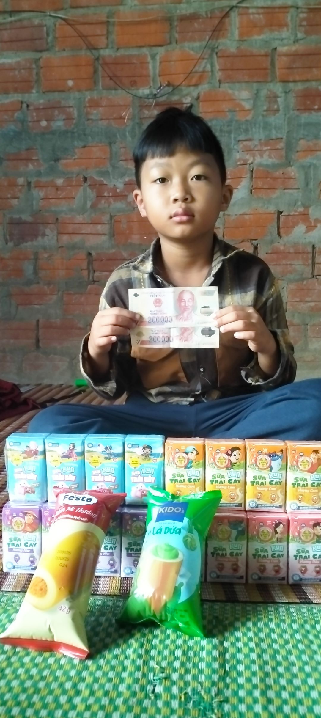 Em đã trao CMTX T6 gồm sữa 200.000đ và 300. 000 tiền mặt.