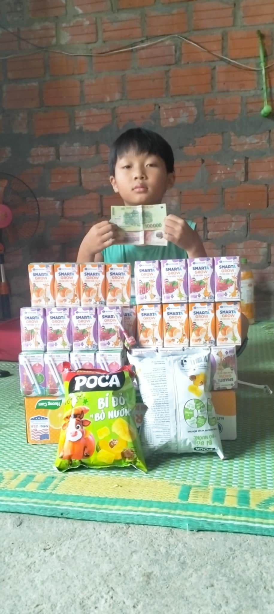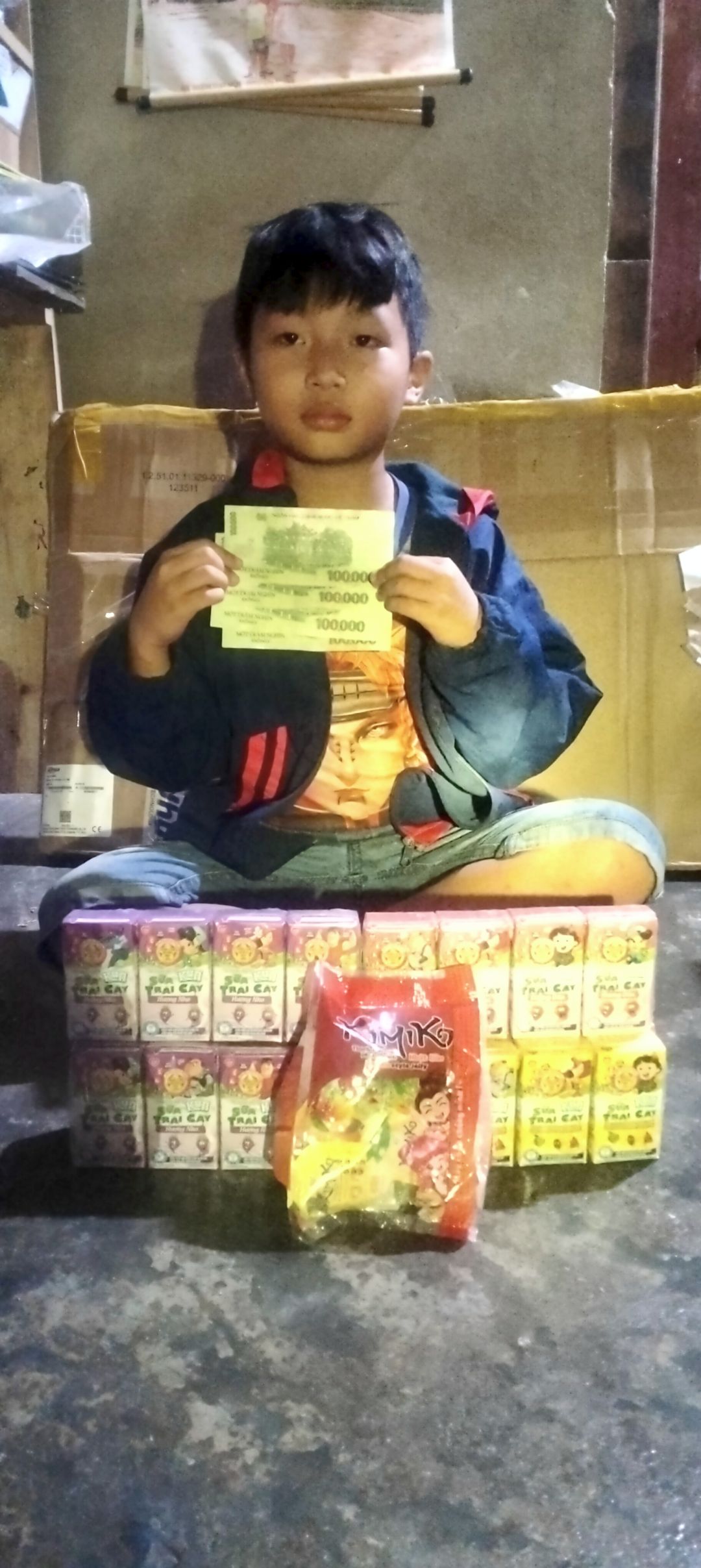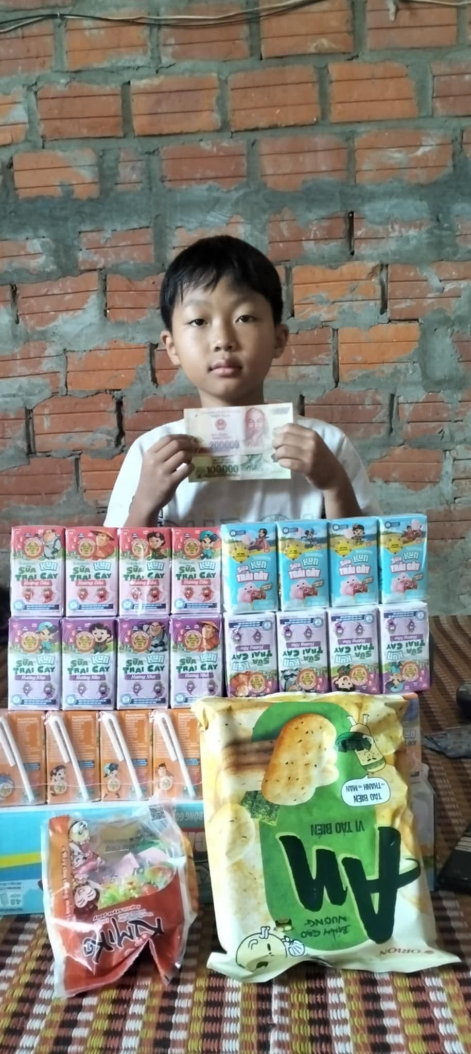 Em đã trao CMTX T6 gồm sữa 200.000đ và 300. 000 tiền mặt.
