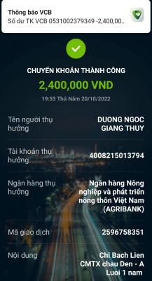 @ Trangvitgioi : Em xuất 3,600,000₫ của Michele_du gửi tới Wendy Duong để giúp Gia đình cháu Dên trong 1 năm kể từ tháng 10/2022 dùm nhé.