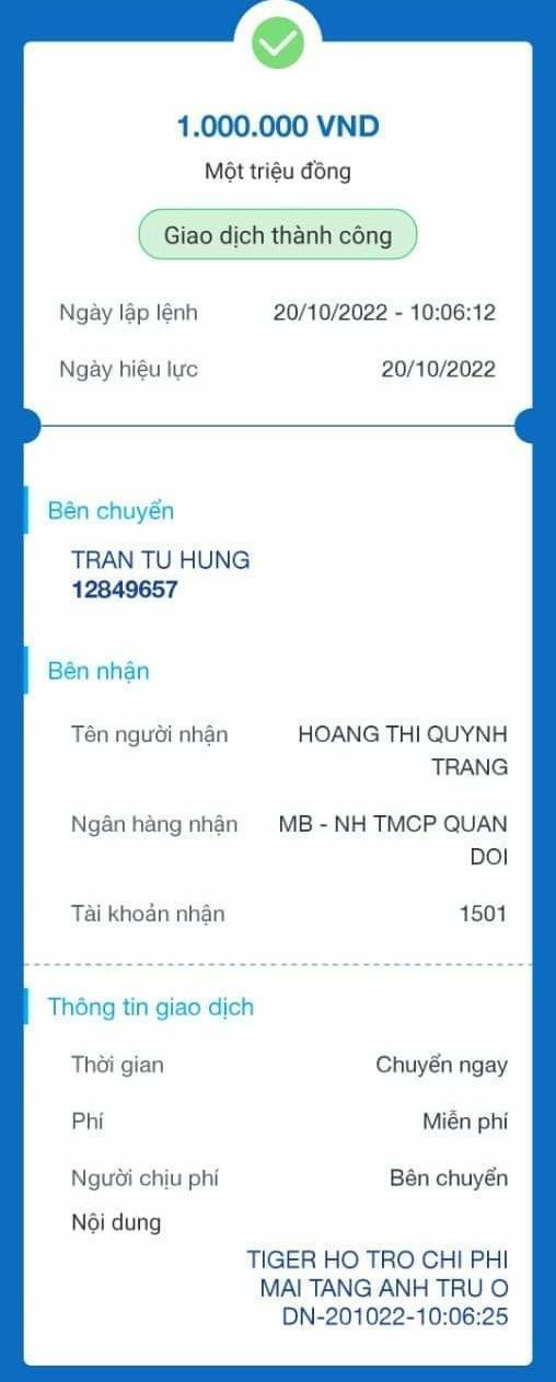 Nội dung chuyển tiền : Giúp đám tang em Trụ