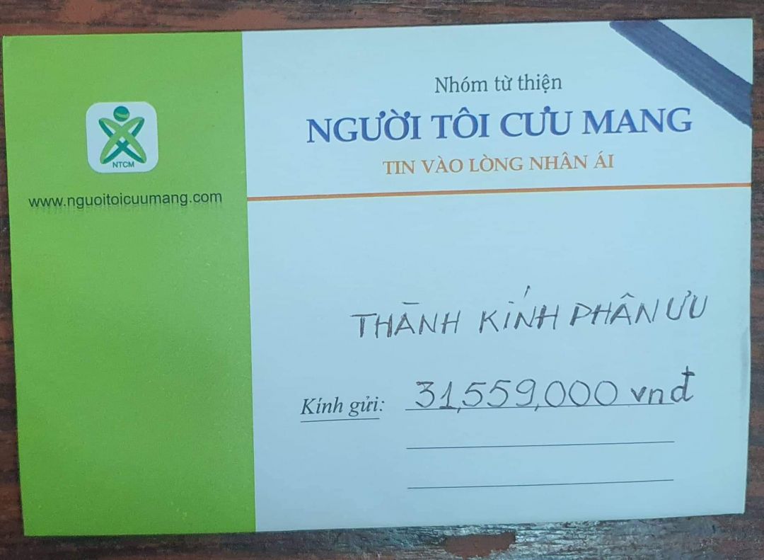 Với sự yêu thương và chia sẻ của mọi người mà chúng ta đã có được khoản tiền 31,559,000₫ để giúp cho Gia đình em Trụ không phải mang gánh nặng chi phí tang lễ mà có lẽ cũng sẽ còn lại chút đỉnh tiền để tiếp tục lo cho 2 anh Long và Hưng còn ở lại.