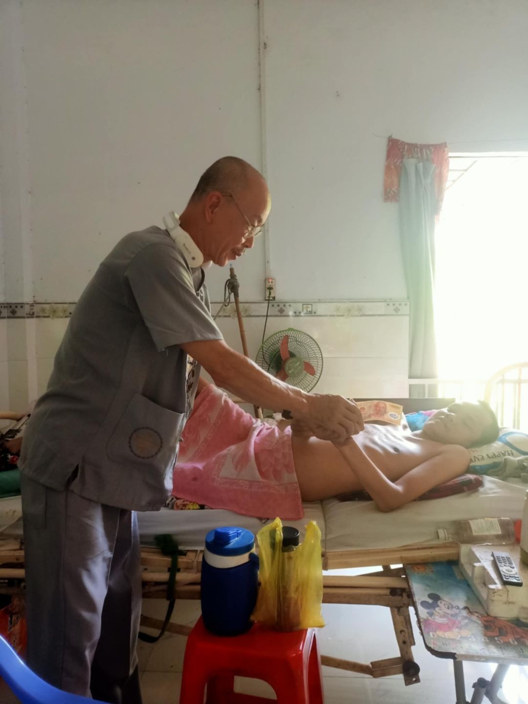 Xe lăn 90 mới đi bệnh viện về còn yếu nên hôm nay nhờ chị trung chuyển cho em Tiền tháng 1 rồi. Nam cũng không được khỏe và xe lăn cũng yếu bình ắc quy rồi nên không đi được