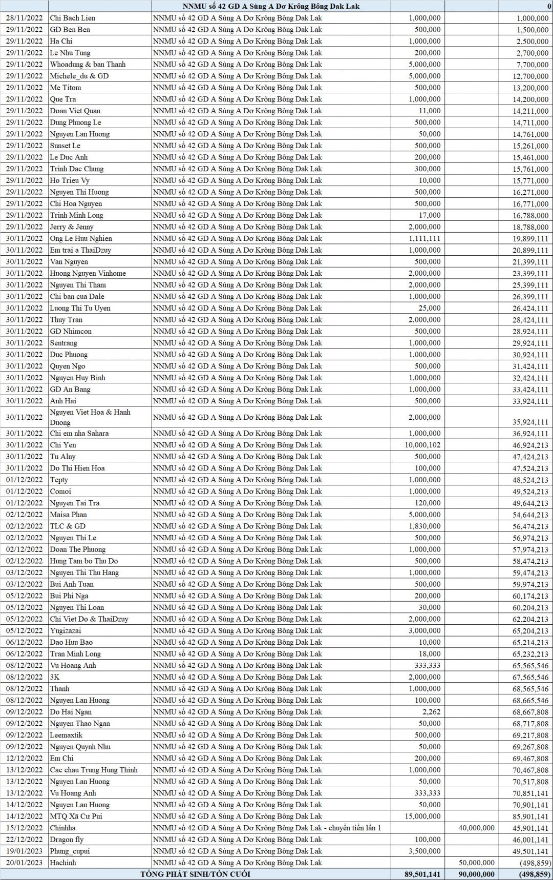 Mình xin báo cáo tổng thu chi của NNMU 42 tại xã Cư Pui ạ.