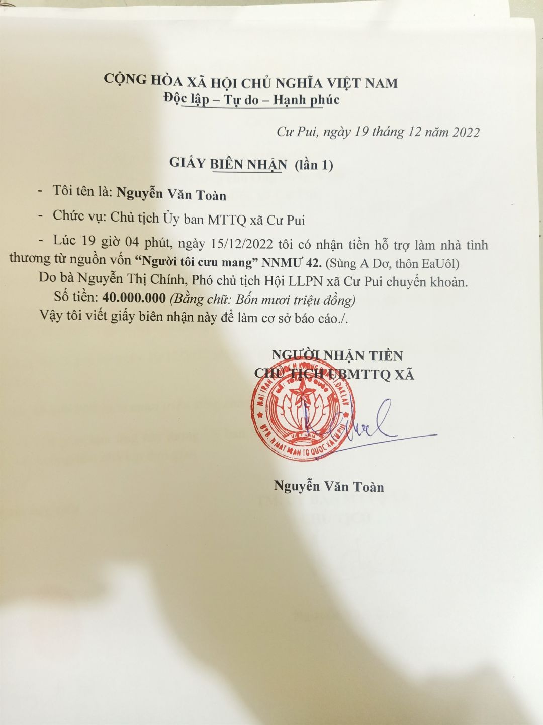 Có thể nói đây là một trong những công trình được nhóm thiện nguyện Người tôi cưu mang xây dựng tại địa bàn xã Cư Pui, NNMU 42 có ý nghĩa đặc biệt quan trọng đối với gia đình anh Dơ chị Mo, giúp gia đình anh chị có nơi ăn chốn ở ấm áp, để 6 cháu nhỏ có nơi sinh hoạt cao ráo, sạch sẽ và yên tâm học tập khi không còn lo cái cảnh ướt trước giọt sau.