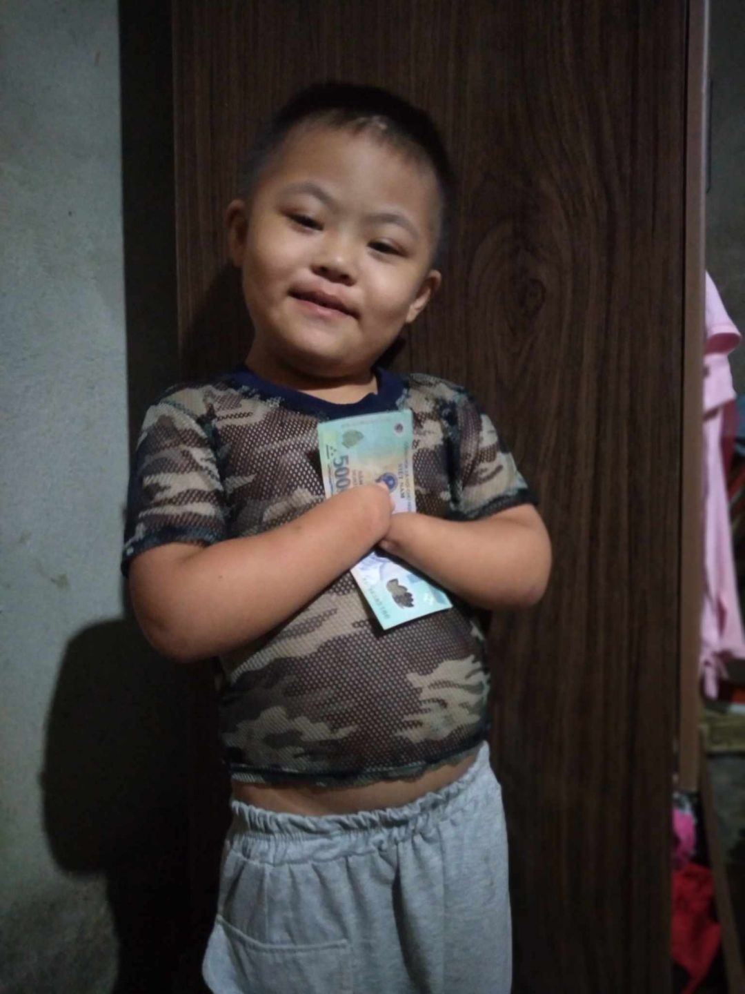 Mong cháu khoẻ và thích nghi tốt với số phận. Nhóm gởi phần quà từ thành viên @ThaiDzuy tri giá 200k đến cháu.