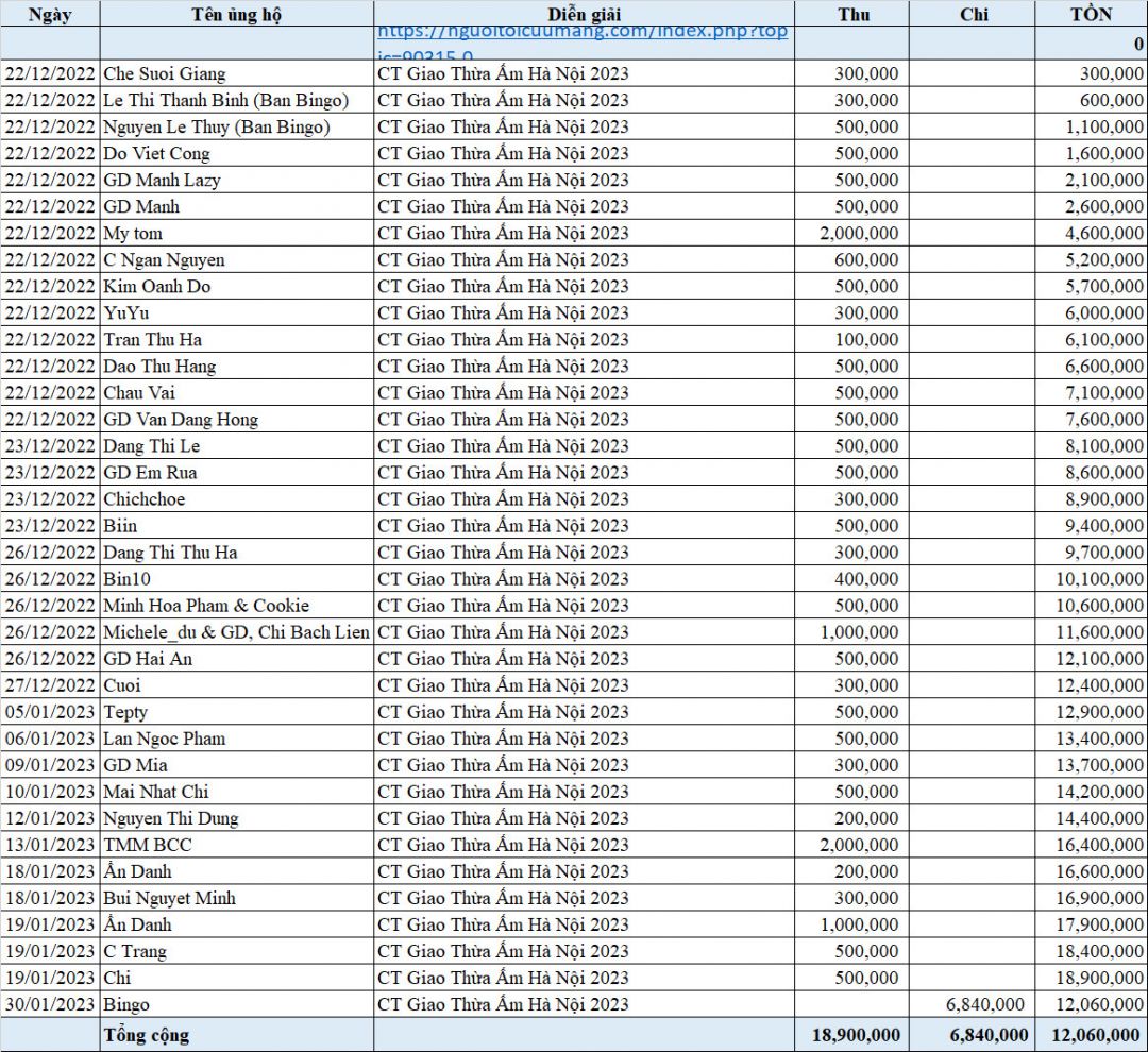 Nhờ chị Tuliptim thống kê phần ủng hộ cho chương trình năm nay và nhóm hoàn thành công việc.