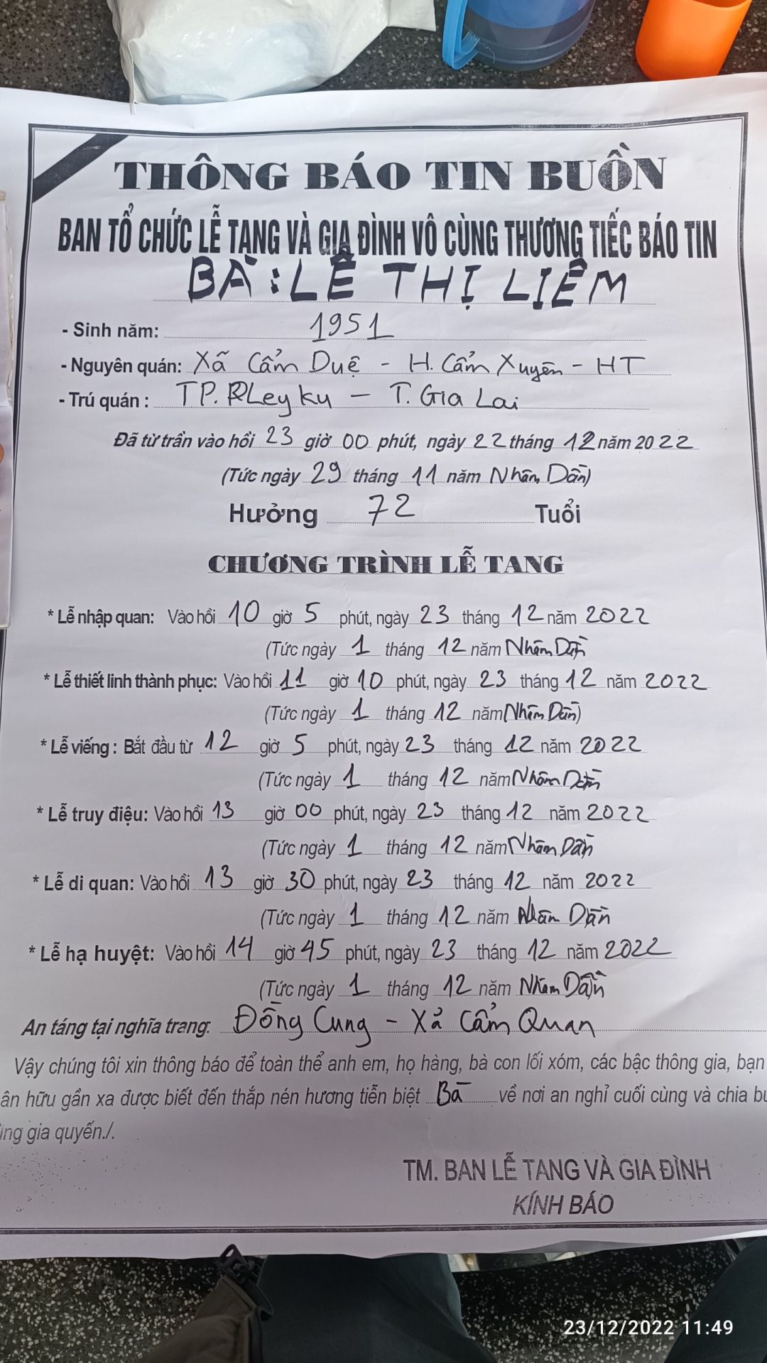 Tác giả Chủ đề: HÀ TĨNH- BÀ LIÊM CẦN HỖ TRỢ MAI TÁNG  (Đã xem 4714 lần)