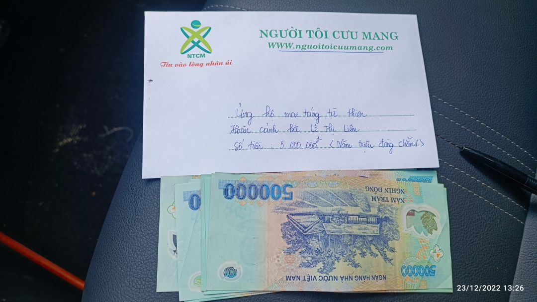 Trưa nay nhóm HT đại diện các MTQ đã trao số tiền 5.000.000 cho gđ bà Liêm, đại diên gđ và chính quền địa phương gửi lời cảm ơn đến các MTQ và nhóm NTCM đã hỗ trợ gđ trong lúc khó khăn