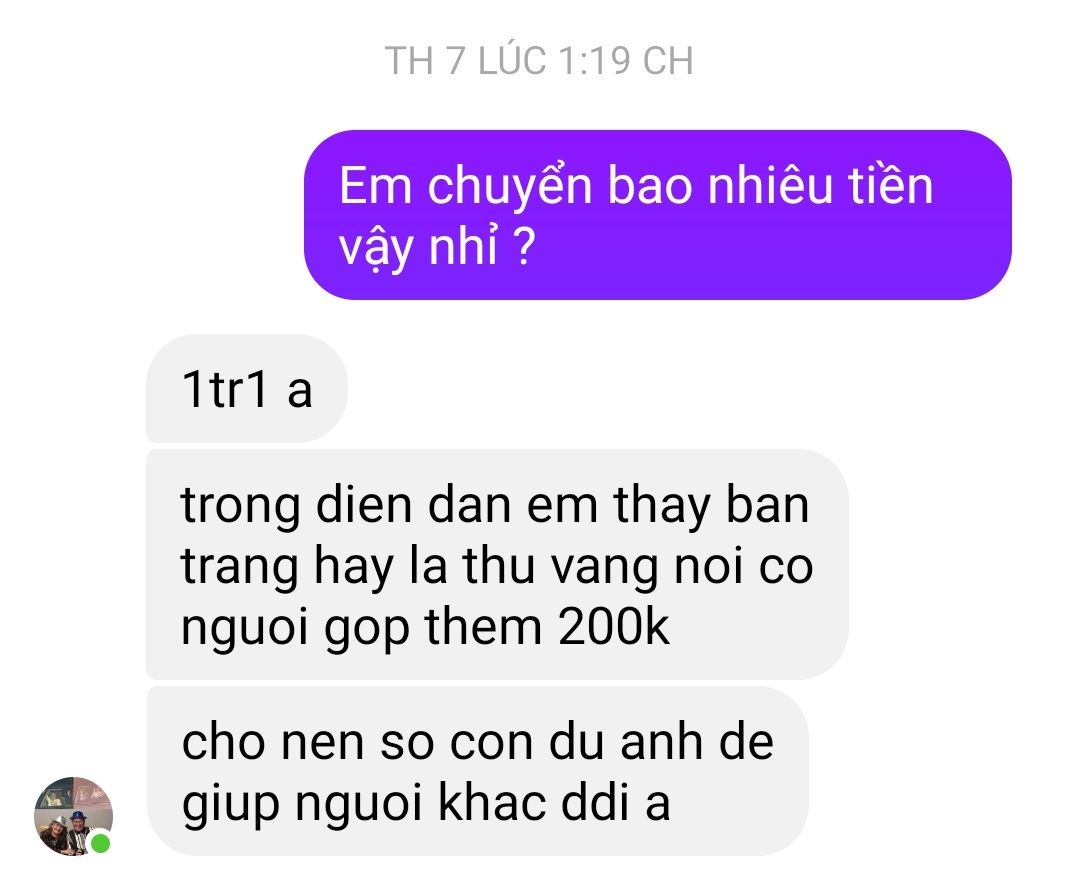 Nhờ anh @banbe6x hỏi ý maisauserasao bổ sung ủng hộ 1.100.000đ hay 900.000đ nhé? Cảm ơn anh.