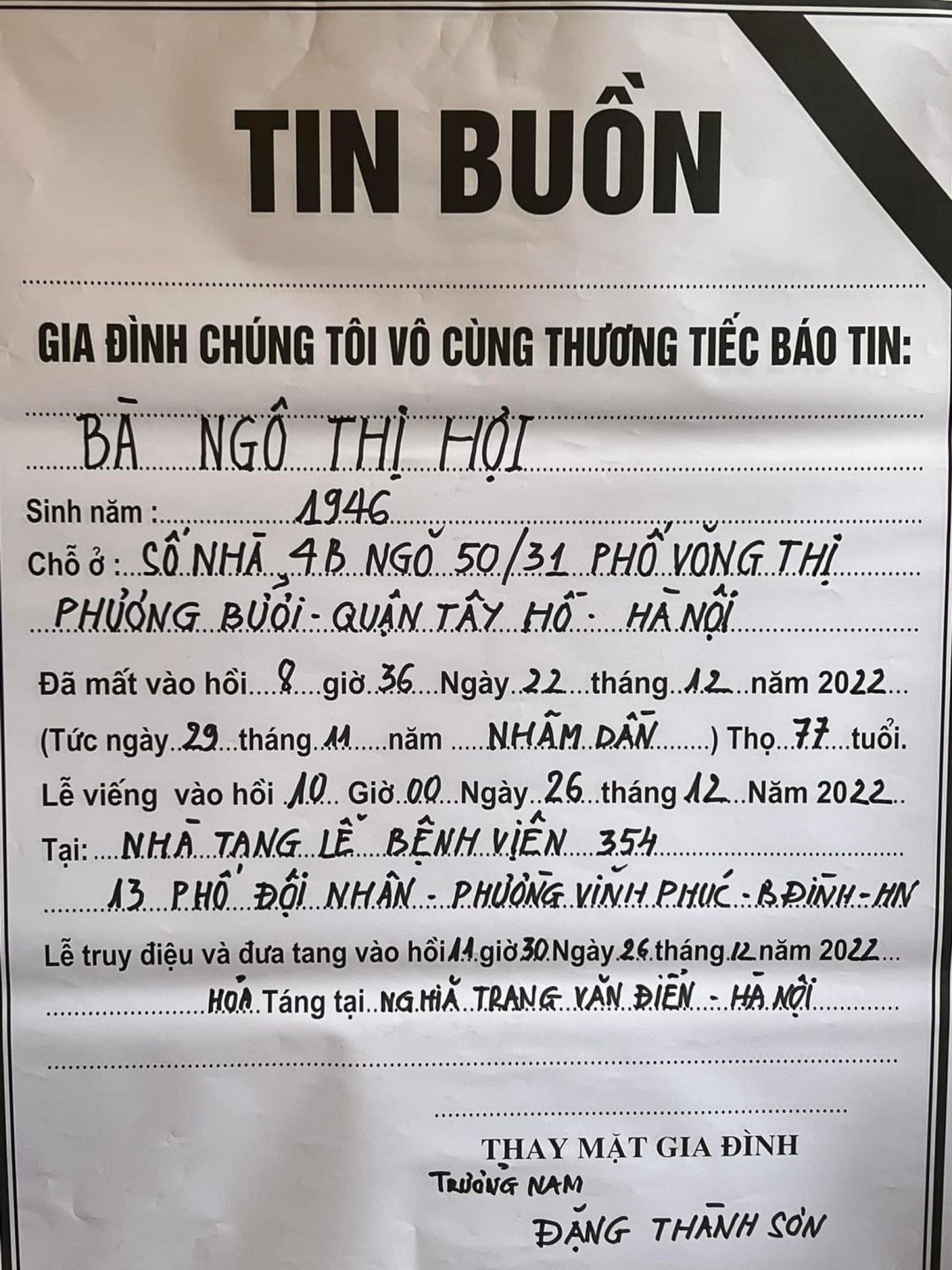 Tin buồn - Chia buồn cùng gđ chị Bội Châu