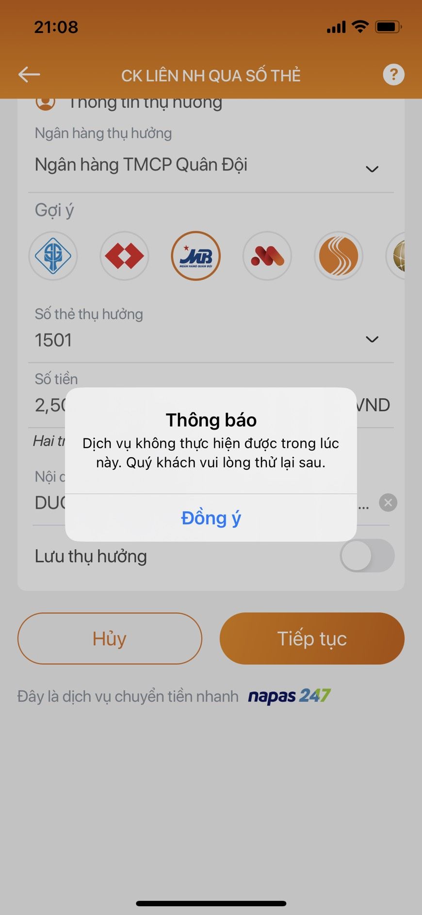 Em Wendy ở nhà thử ck mấy lần đều lỗi ạ. Nay em lên ngân hàng để ck lại số tiền CMTX 2.500.000đ rồi ạ!